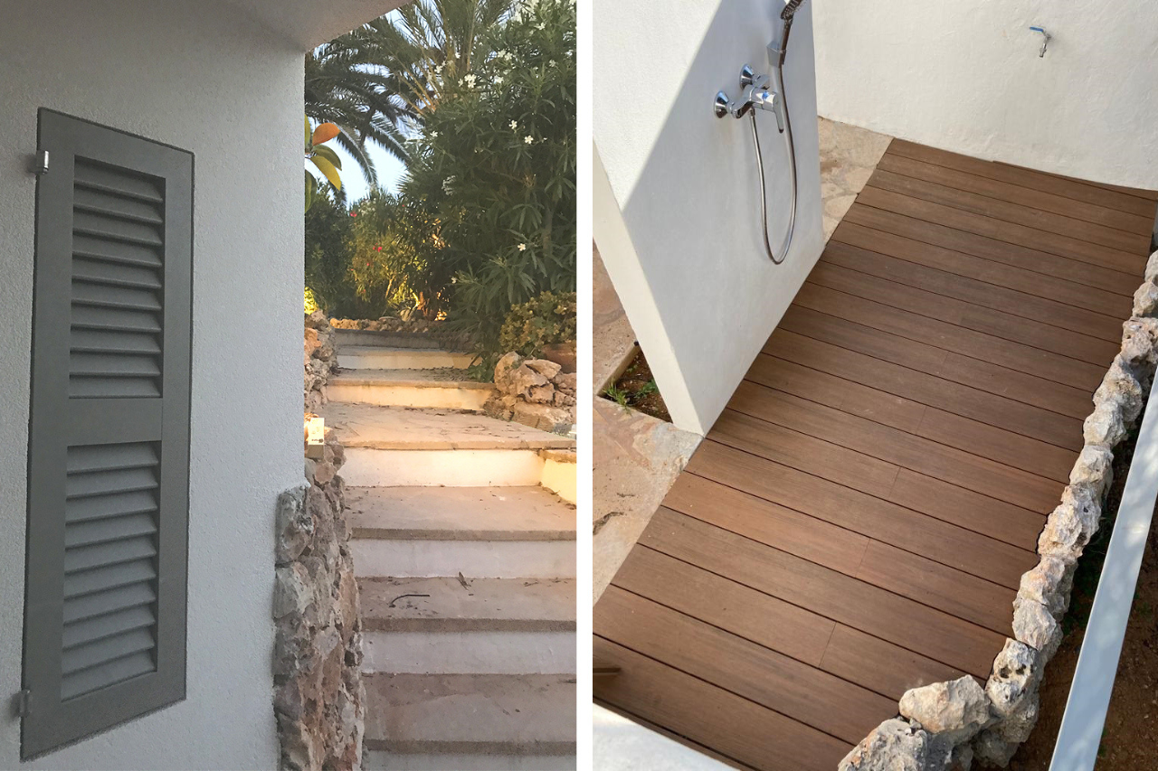 Las construcciones de la zona son de estilo ibicenco, al igual que la casita de invitados, por tal razón, se decidió mantener un estilo tradicional y diseñar el interior al estilo boho, con muebles de obra, colores y tejidos naturales combinado con el blanco, consiguiendo así un ambiente muy acogedor.
